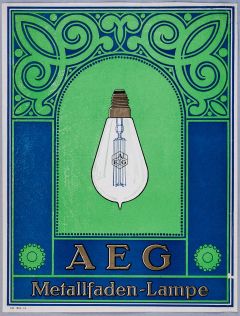 Werbeblatt „AEG Metallfaden-Lampe“, Entwurf: Peter Behrens, Allgemeine Elektricitäts-Gesellschaft Installations-Büro Cöln, 1908-1911, Papier, 27,5 x 21 cm, Inv.-Nr.: rz 15/166 Bildquelle © LVR-Industriemuseum Oberhausen, Foto: Tanita Dreßen
