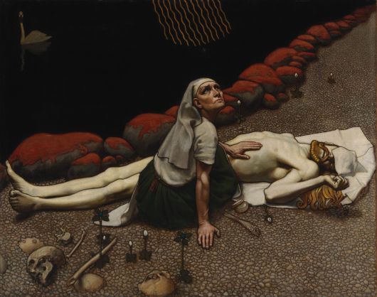 Akseli Gallen-Kallela Lemminkäinens Mutter, 1897, 85,5 × 108,5 cm, Tempera auf Leinwand. Die Figur Lemminkäinen stammt aus der finnischen Mythologie und ist einer der Helden des Nationalepos Kalevala. Finnish National Gallery / Ateneum Art Museum, Antell Collections, Helsinki. © Foto: Finnish National Gallery / Hannu Pakarinen Bildquelle © ALBERTINA Wien 2025 |