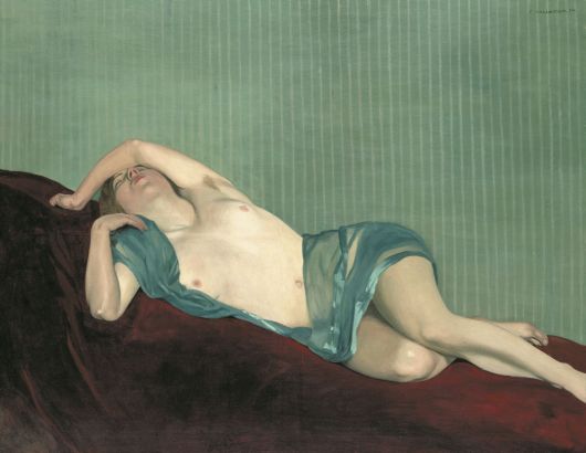 Félix Vallotton Nu à l’écharpe verte, 1914. Öl auf Leinwand, 112 × 145 cm, La Chaux-de-Fonds, Collection du Musée des beaux-arts. Foto © Pierre Bohrer, Le Locle. Bildquelle © MCBA Lausanne |