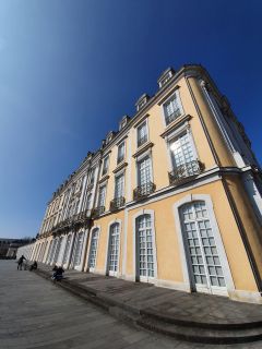 Fassade am Schloss. Als bedeutende Schöpfungen des Rokokostils wurden beide Schlösser 1984 in die UNESCO-Welterbeliste aufgenommen. Foto/ Bildquelle © rheinische ART 2025